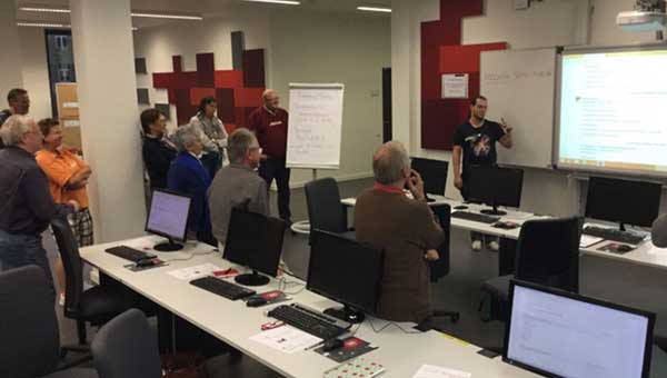 TechniklotsInnen bringen SeniorInnen neue Medien bei.