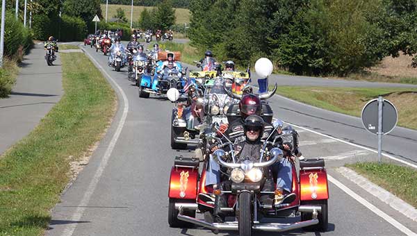 Zündkerze fährt Motorrad mit Menschen mit Behinderung.