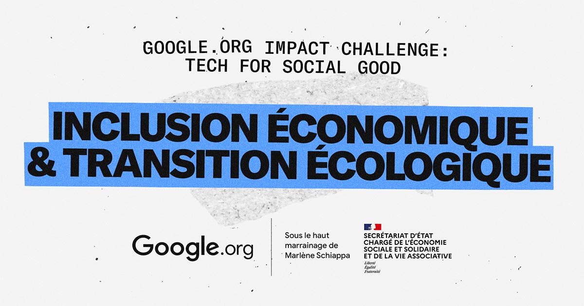 Le Google.org Impact Challenge : Tech for Social Good est un appel à projets à destination des acteurs français et européens de l’économie sociale et solidaire. En France, le challenge porte sur les problématiques d’inclusion économique et de transition écologique dans les territoires.